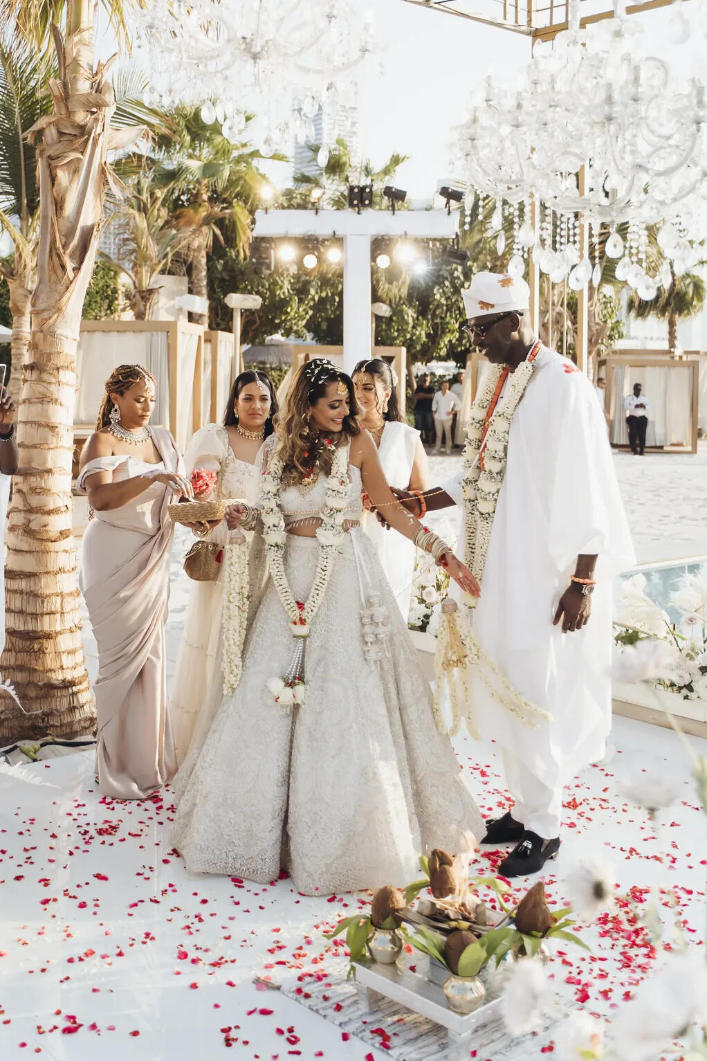My ceremonies are conducted in English, with the essential mantras performed in Sanskrit – a perfect balance of purity and accessibility. Every ritual is explained with my signature warmth, energy, and intention, so whether your guests are followers of Hindu tradition or experiencing it for the very first time, they are with you on the journey, every step of the way.